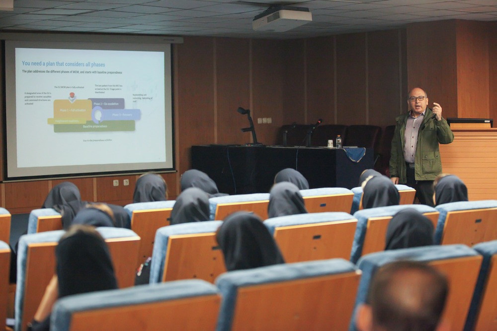 در ادامه دکتر هومان حسین نژاد در خصوص الزام تهیه و تدوین نقشه های مرتبط با زون بندی مناطق تریاژ، کیت های مدیریتی و عملیاتی، مدیریت بالین و منابع و مستند سازی طبق پروتکل های سازمان بهداشت جهانی و دانشگاه علوم پزشکی تهران مطالبی را ارائه کردند.